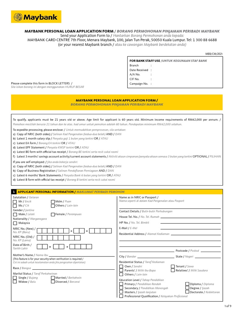 Personal Loan Maybank 2020 2022 Fill And Sign Printable Template Online Us Legal Forms